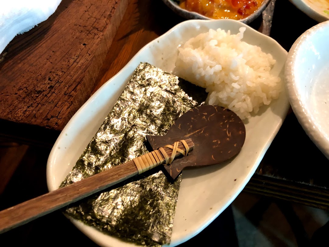 ごはんと海苔も一緒に来るので、巻いて食べるとさらに美味しいです!