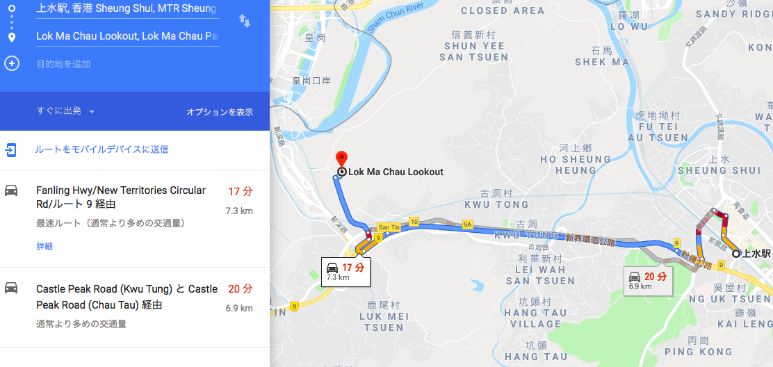 上水から展望台(Lok Ma Chau Lookout)までは車で20分ほどで到着をします。